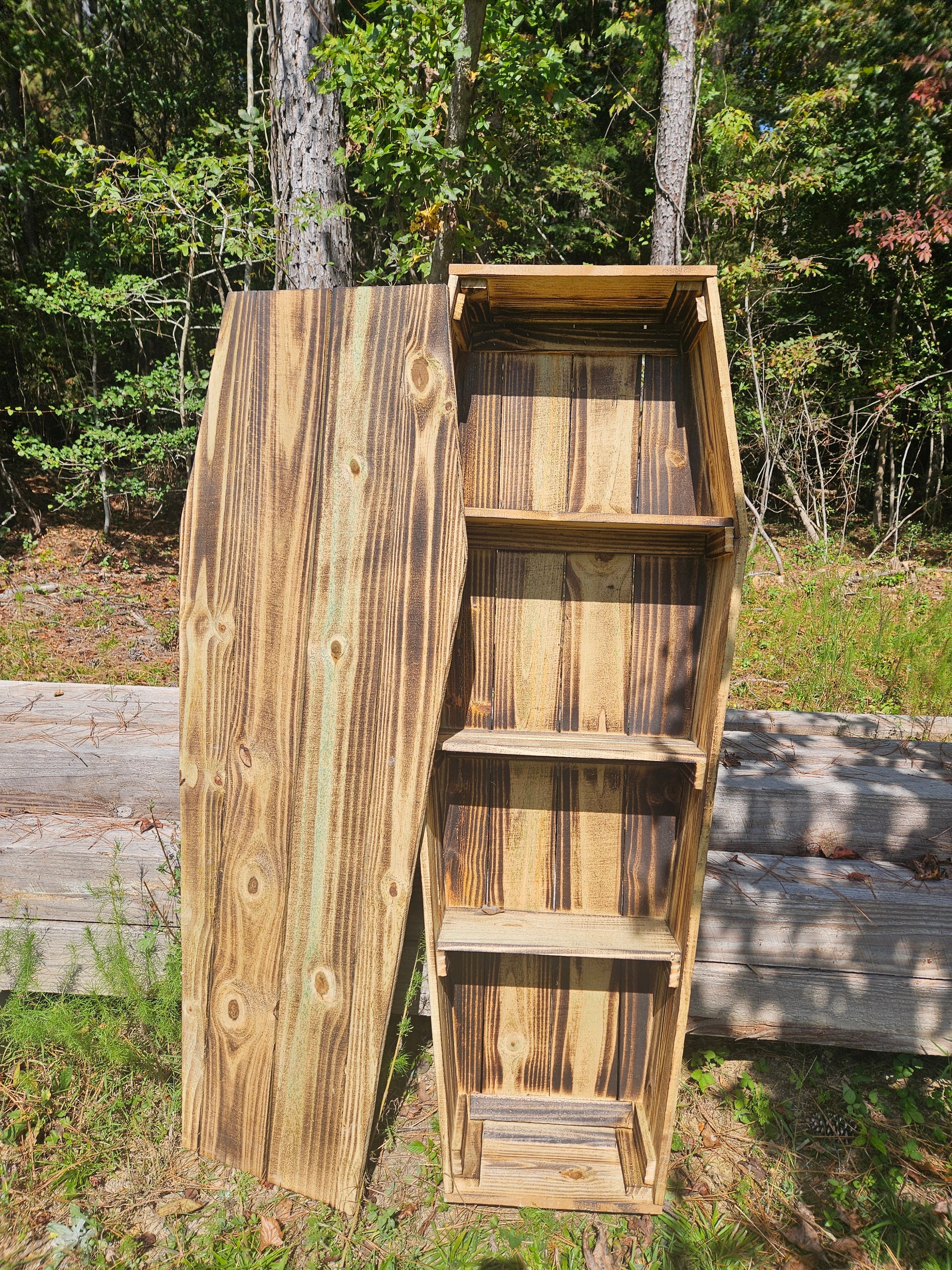A decorative coffin that can be used to display your favorite holiday "ornaments".